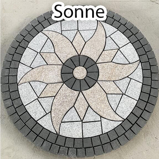 Mosaik Sonne rund Granit (grau, gelb, schwarz) geflammt, 3 cm Stärke